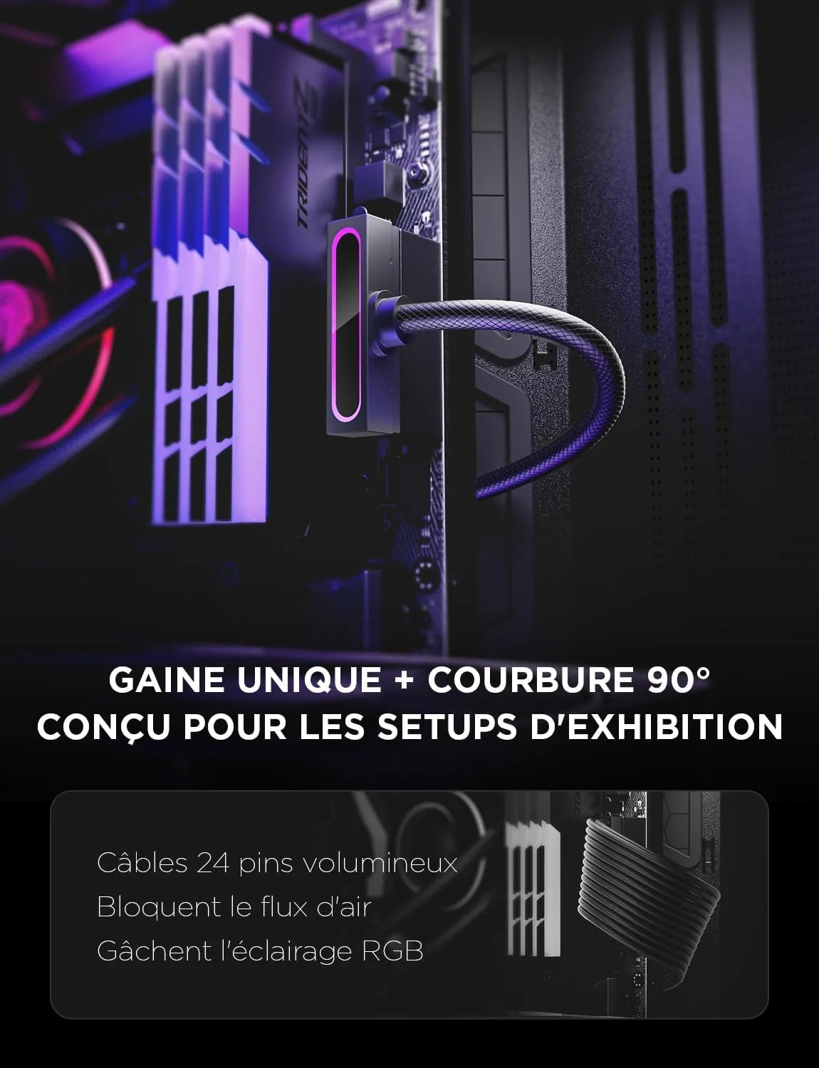 | Builds custom avec contraintes d’espace | Enthousiastes de PC compact, casiers mini-ITX | Réduit l’encombrement en évitant les câbles multiples depuis la PSU. |