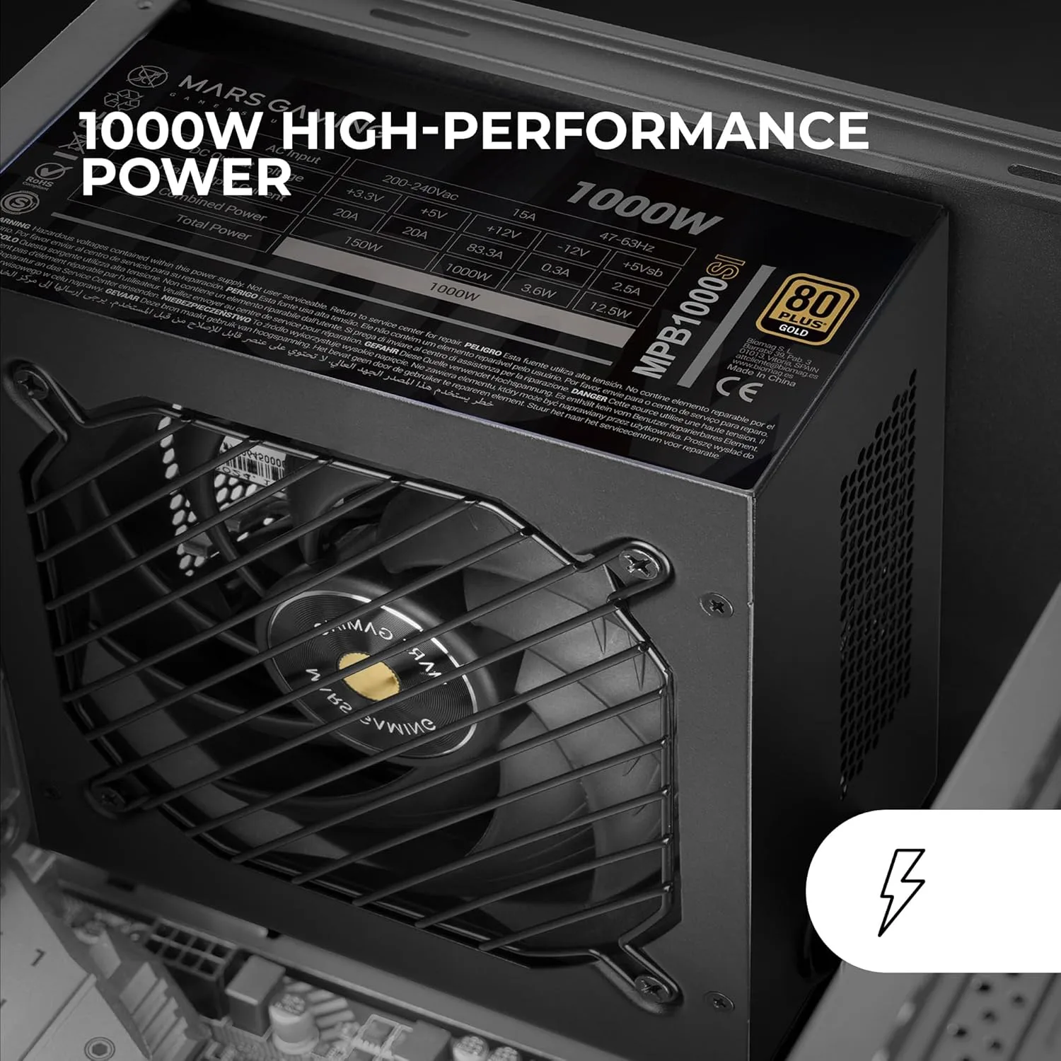 Conçue pour les configurations haut de gamme exigeant à la fois puissance et discrétion, l’alimentation Mars Gaming MPB1000SI se distingue par une approche innovante alliant efficacité énergétique et réduction des nuisances sonores. Avec une puissance de 1000W certifiée 80 Plus Gold (90% d’efficacité), ce modèle s’adresse aux plateformes récentes intégrant des GPU haut de gamme comme les NVIDIA RTX 4090 ou AMD Radeon RX 7900 XTX, tout en garantissant une stabilité optimale pour les overclockings poussés.