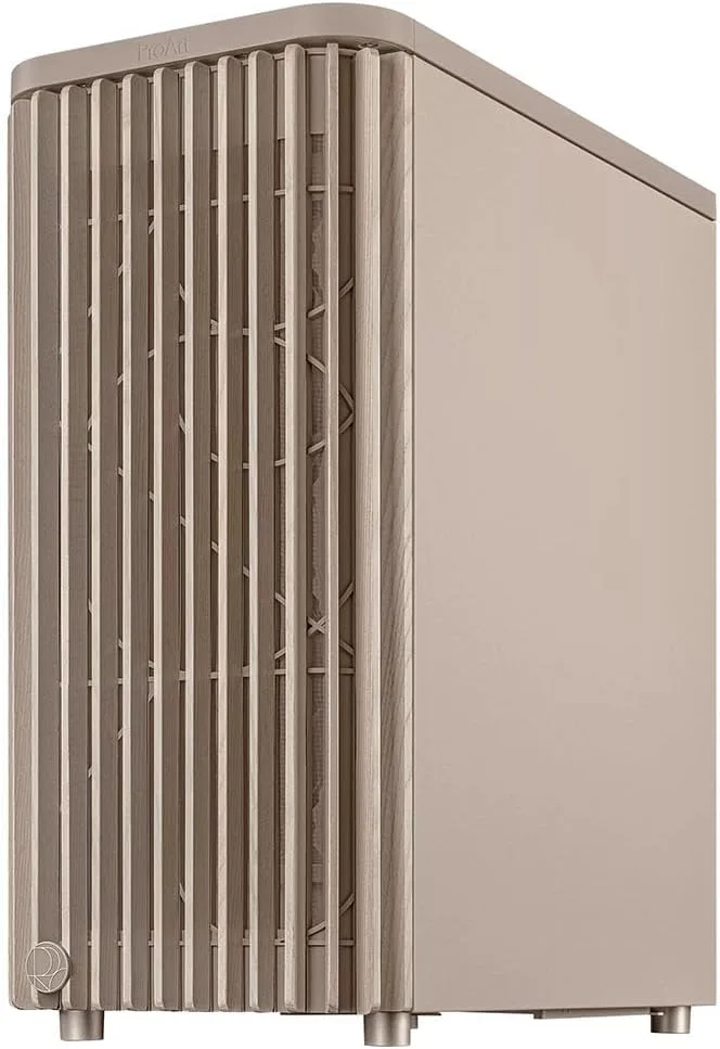 L’élément le plus marquant de ce boîtier reste son panneau avant en maille beige et bois, inspiré des designs industriels des années 1920, qui en fait un produit unique sur le marché des châssis gaming. Cette finition en bois massif (acajou ou noyer selon les versions), combinée à une structure en acier, offre une résistance mécanique supérieure aux boîtiers plastiques classiques, tout en réduisant les résonances sonores – un avantage pour les configurations silencieuses ou les montages en workstation.