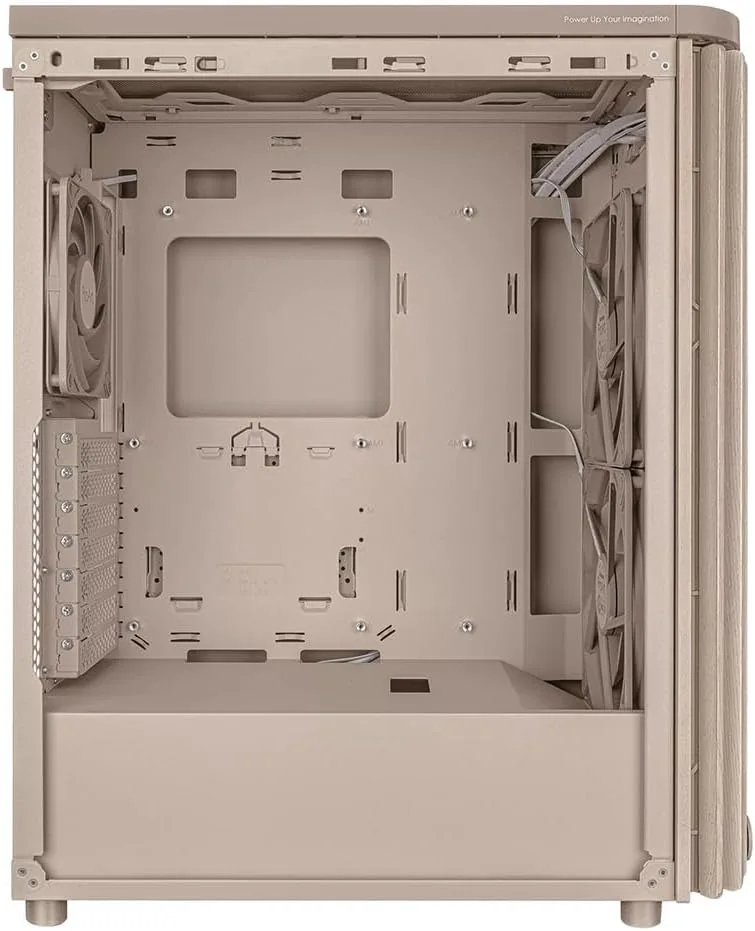 À titre comparatif, des boîtiers comme le Lian Li PC-O11 Dynamic ou le Fractal Design Meshify C intègrent également des ventilateurs de 160 mm, mais leur disposition et leur compatibilité avec des composants surdimensionnés diffèrent. Le PA401 Wood Edition se démarque par son panneau en maille beige, qui, combiné aux ventilateurs, favorise une ventilation naturelle tout en maintenant une esthétique premium.