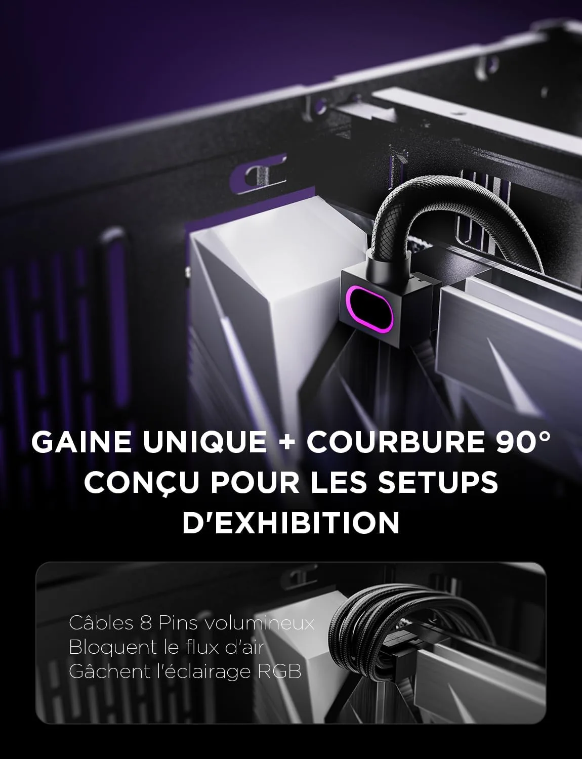 | Overclocking ou tests de stabilité | Configuration avec Ryzen 9 7950X ou i9-13900K en refroidissement liquide | Une alimentation optimale (câbles courts et directs) réduit les risques de micro-cuts. L’extension permet de tester sans contrainte. |