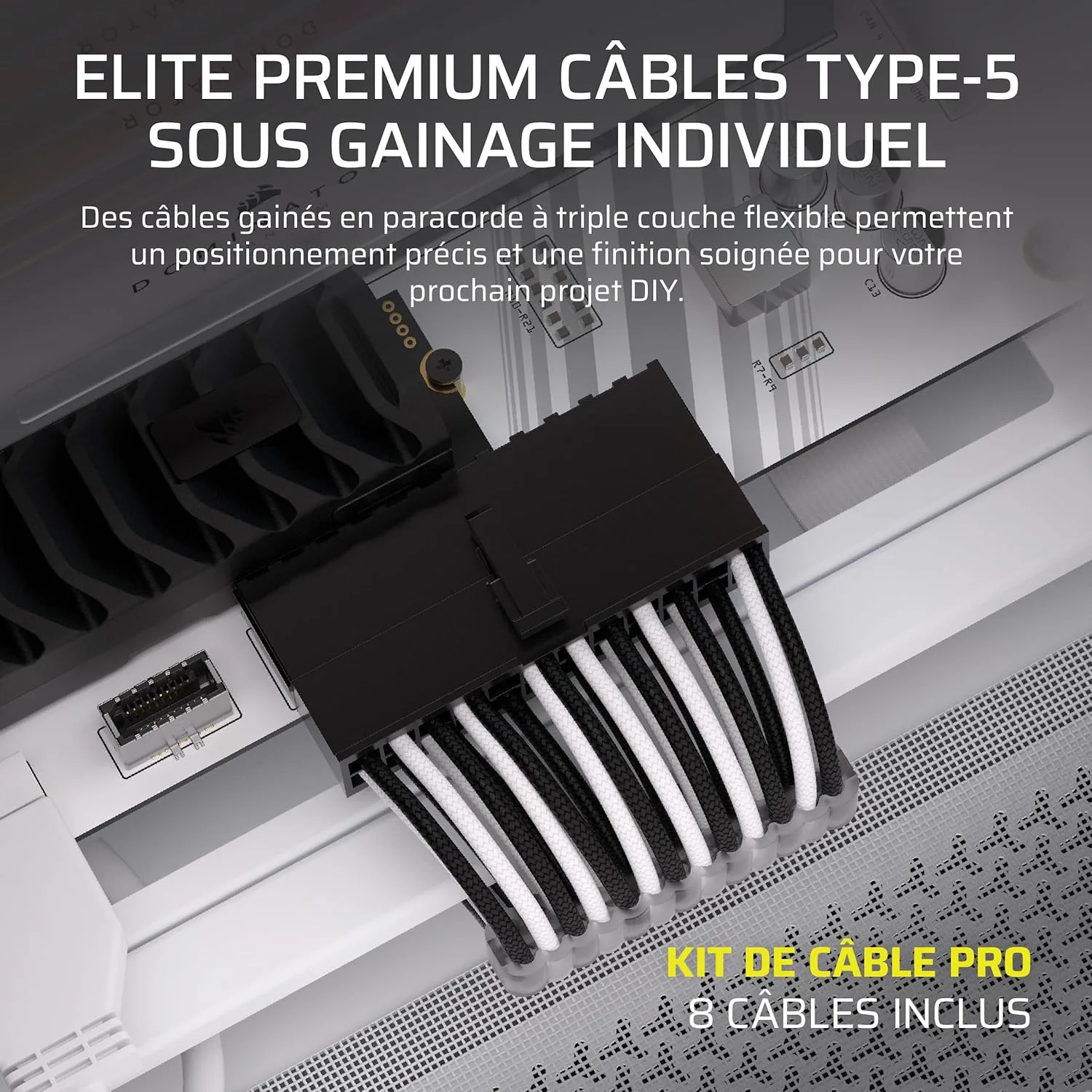 À noter que certains modèles de PSU Type 5, comme les séries Corsair RMx ou HX, intègrent des connecteurs hybrides, permettant une compatibilité partielle avec des accessoires ATX traditionnels. Cependant, pour tirer pleinement parti des avantages du kit Elite Premium, il est recommandé d’utiliser une PSU entièrement compatible Type 5.