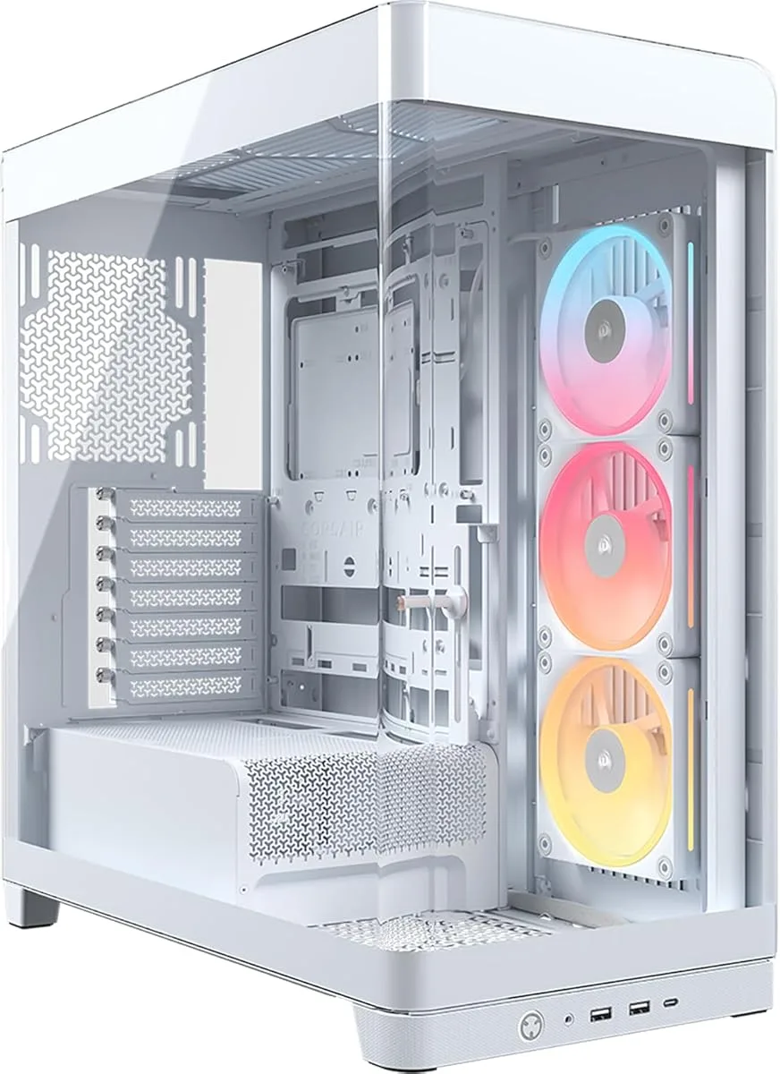 Le boîtier arbore une finition blanc mat, un choix esthétique qui contraste avec les noirs dominants du marché. Cette couleur, bien que subjective, séduit les utilisateurs recherchant une ambiance plus épurée, tout en permettant une intégration harmonieuse avec des composants RGB. À noter que Corsair propose également des versions alternatives (noir, rouge), mais la version blanche reste la plus polyvalente pour les configurations multicolores.