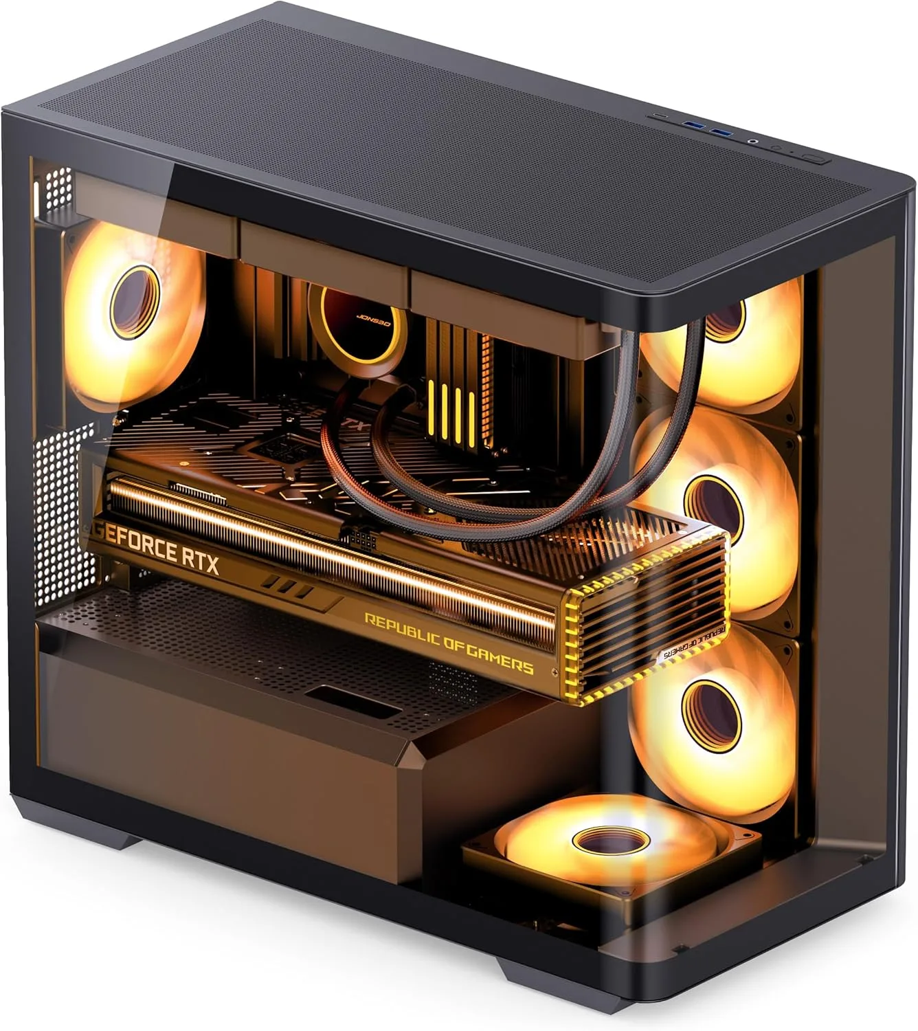 Jonsbo D300 : L’innovation en matière de boîtier Mid-Tower avec verre trempé coudé à 270°
