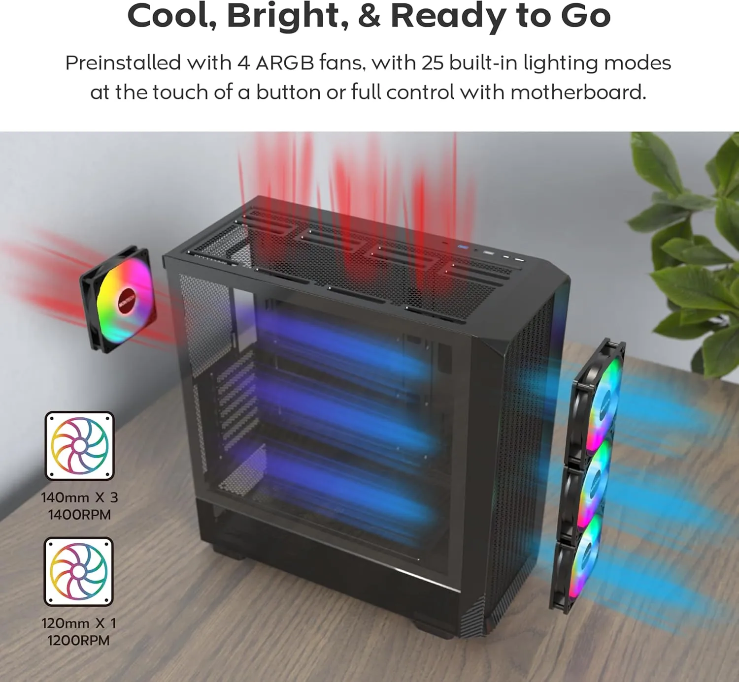 L’un des points forts du Montech X5 réside dans son système de ventilation pré-installé, avec trois ventilateurs ARGB de 140 mm (rear et top) et un 120 mm (avant). Cette configuration permet une pression d’air positive efficace pour les configurations avec GPU haut de gamme ou refroidissement liquide.