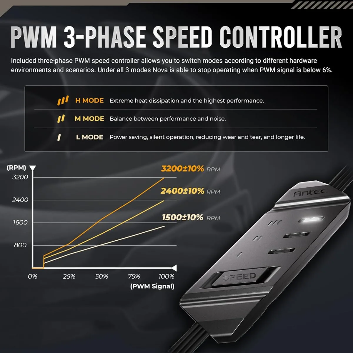 3 Ventilateurs Antec Nova 12cm Noir : Ventilation Silencieuse pour Boîtier Compact