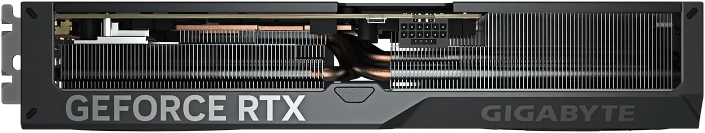 Le système repose sur un radiateur en cuivre de 200 mm, couplé à trois ventilateurs alternate spinning de 90 mm. Cette configuration permet une meilleure répartition de l’air et une réduction des points chauds, tout en maintenant un fonctionnement silencieux. Les ventilateurs, dotés de pales optimisées et d’un moteur fluid dynamique, ajustent automatiquement leur vitesse en fonction de la charge de la carte, passant d’un mode silencieux à un mode performance selon les besoins.
