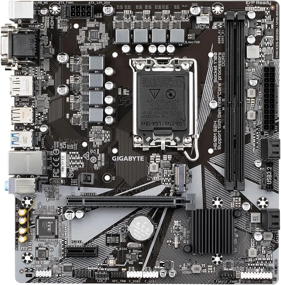 La H610 est conçue pour les utilisateurs recherchant une carte mère abordable sans sacrifier les bases. Contrairement aux chipsets B660 ou H670, elle ne supporte pas l’overclocking du CPU ni l’overclocking de la RAM (sauf exceptions avec certains modèles haut de gamme). En revanche, elle offre une compatibilité complète avec les 14th Gen Intel et des fonctionnalités de base comme le PCIe 4.0 pour le stockage (M.2) et le DDR4 jusqu’à 5600 MHz.